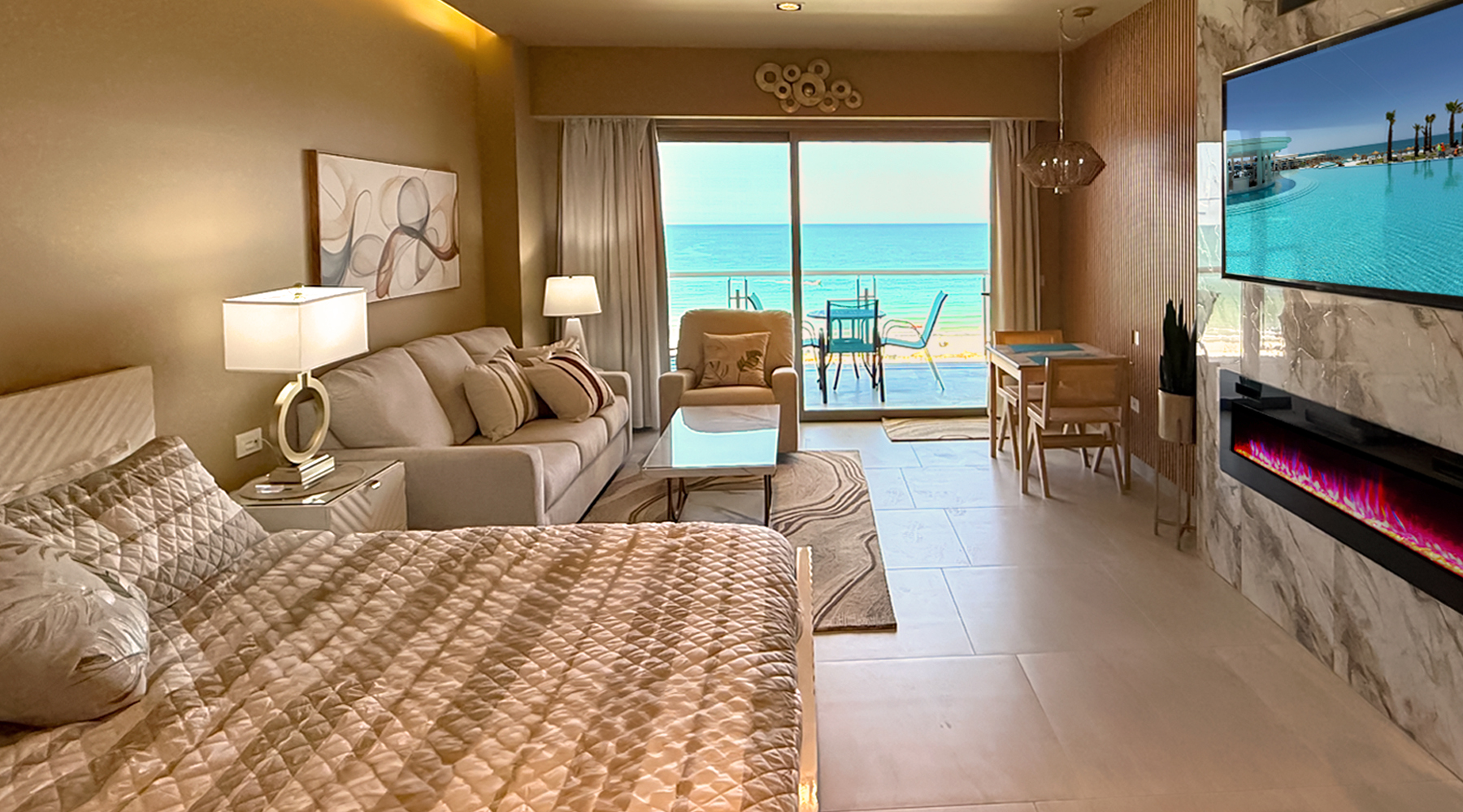 Step out onto your private balcony and take in breathtaking panoramic views of the ocean — the perfect spot to sip wine at sunset or enjoy a quiet morning breeze.